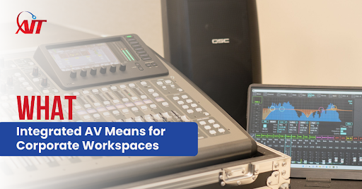 Integrated audio video (AV) combines displays, microphones, speakers, video conferencing, and control systems into a unified solution. It ensures meetings run smoothly, improves team collaboration, and enhances professional presentations.